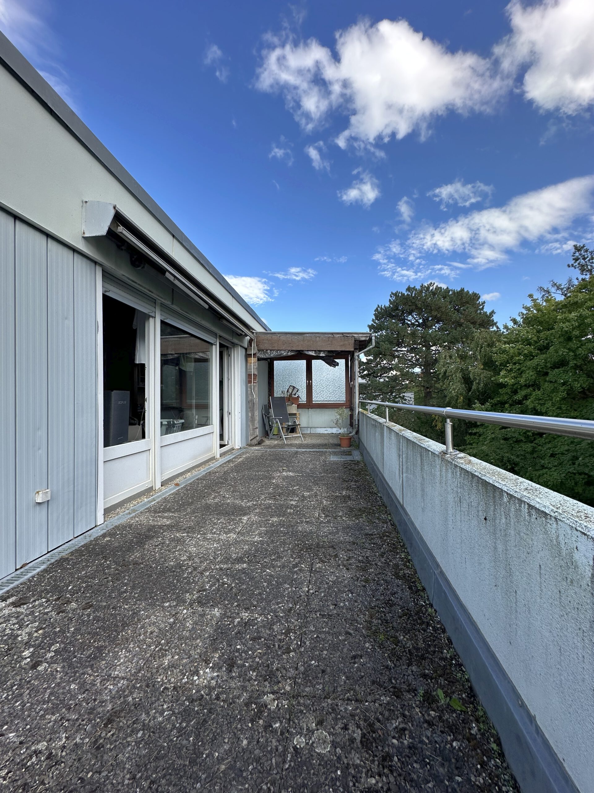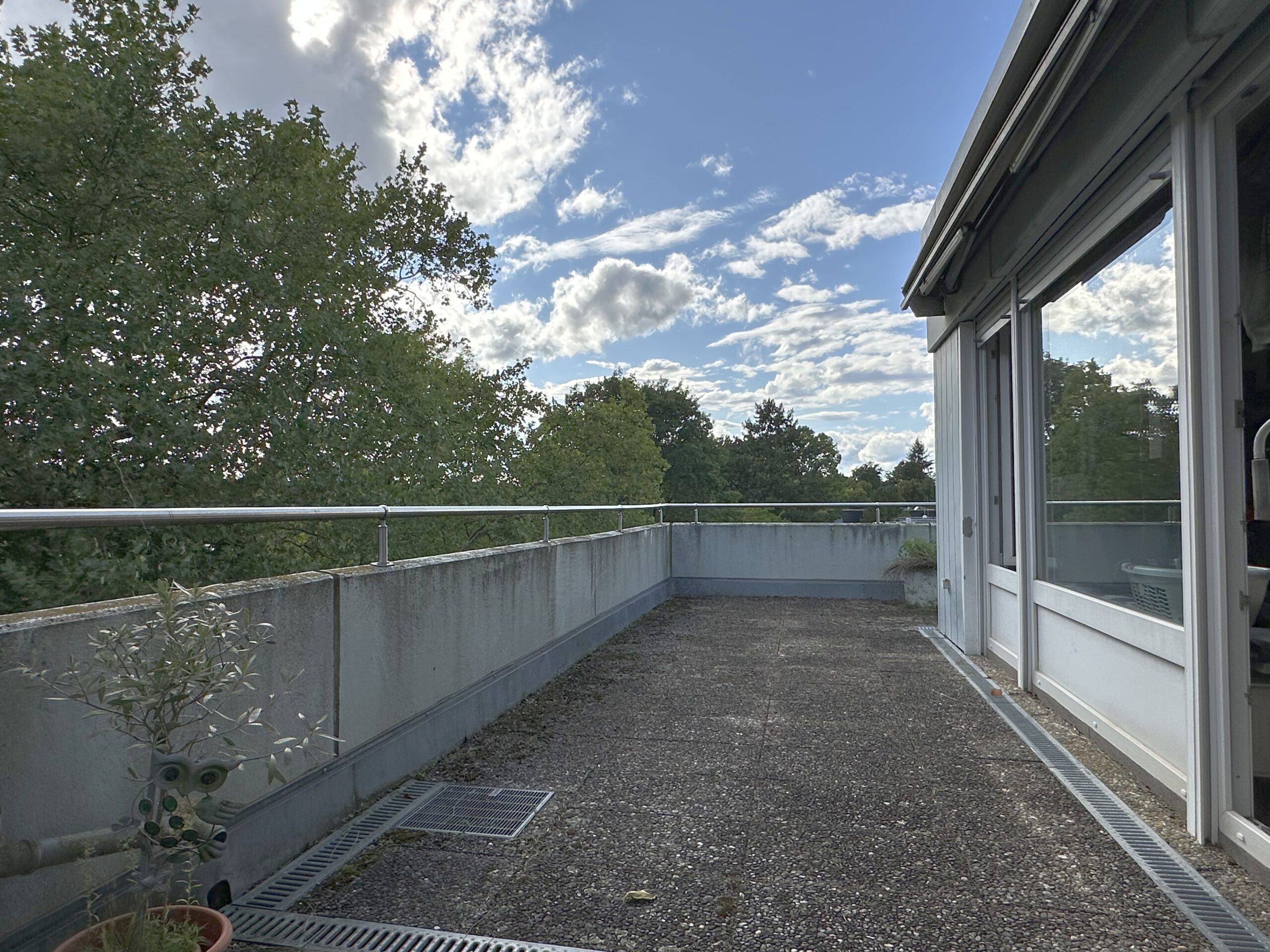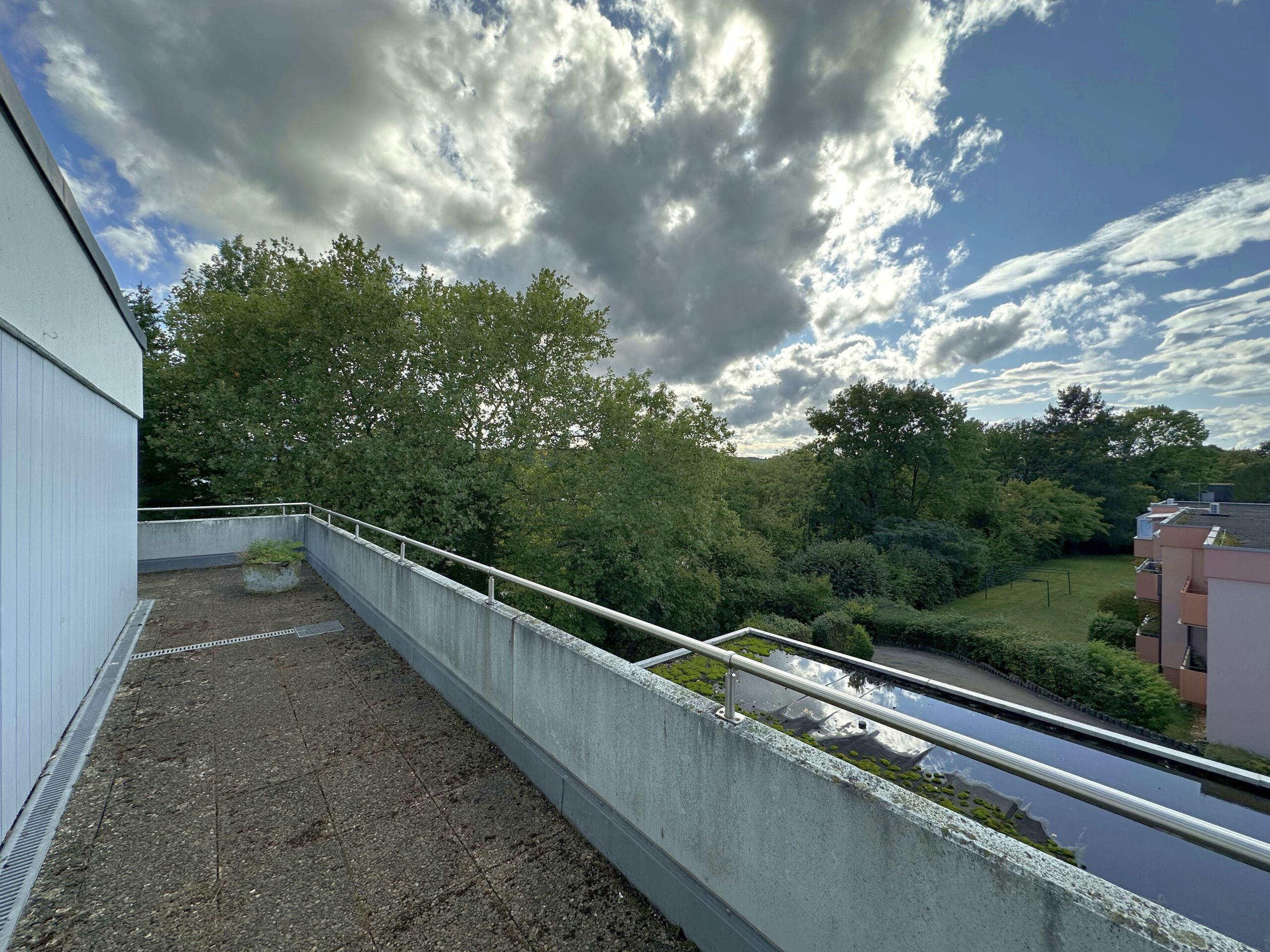 Ein echtes Highlight ist die große, umlaufende Dachterrasse mit über 20 m² Fläche in Süd-West Ausrichtung, die an den schönen Tagen des Jahres zum Verweilen an der frischen Luft und zum Genießen der wärmenden Sonnenstrahlen bei einem traumhaften Blick ins Grüne einlädt.